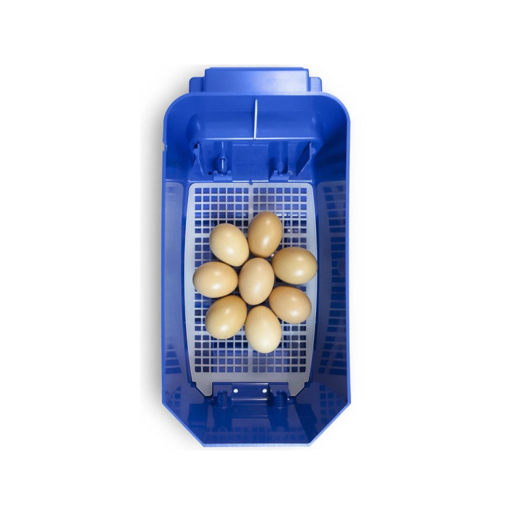 Inkubator je opremljen z modulom za samodejno obračanje jajc vsako 1 uro, kar pomaga vzdrževati reden režim inkubacije brez potrebe po pogostih posegih. Če situacija to zahteva, lahko jajca po odklopu modula in odstranitvi obračalne rešetke obračate tudi ročno. Zadnja 2-3 dni inkubacije se jajca standardno premaknejo na valilno mrežo, kjer se ne obračajo več.