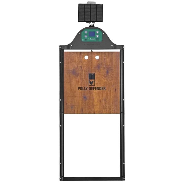 Polly AutoDefender so sodobna avtomatska vrata za kokošnjak , ki bodo vaše kokoši varovala vsak dan – ne glede na letni čas, vreme ali vašo odsotnost. Odpiranje in zapiranje je popolnoma samodejno , natančno glede na vaše izbrane nastavitve – npr. raven svetlobe ali nastavljeni čas. Vrata se zvečer varno zaprejo in zjutraj ponovno odprejo – brez skrbi, brez naglice, brez tveganja. Celoten paket vključuje tako krmilno enoto s sončno celico, vratno ploščo kot tudi tirnice.