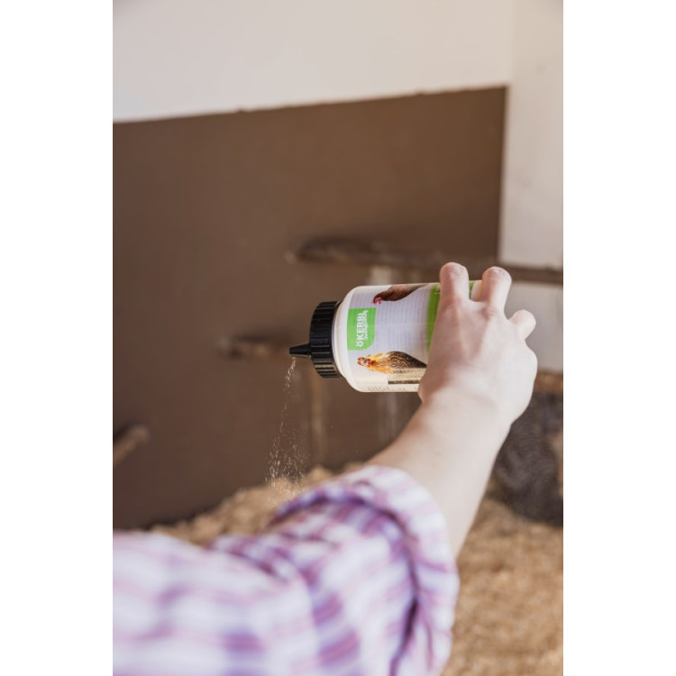 Pomaga omejiti pršice, uši in druge nezaželene parazite v kokošnjaku.