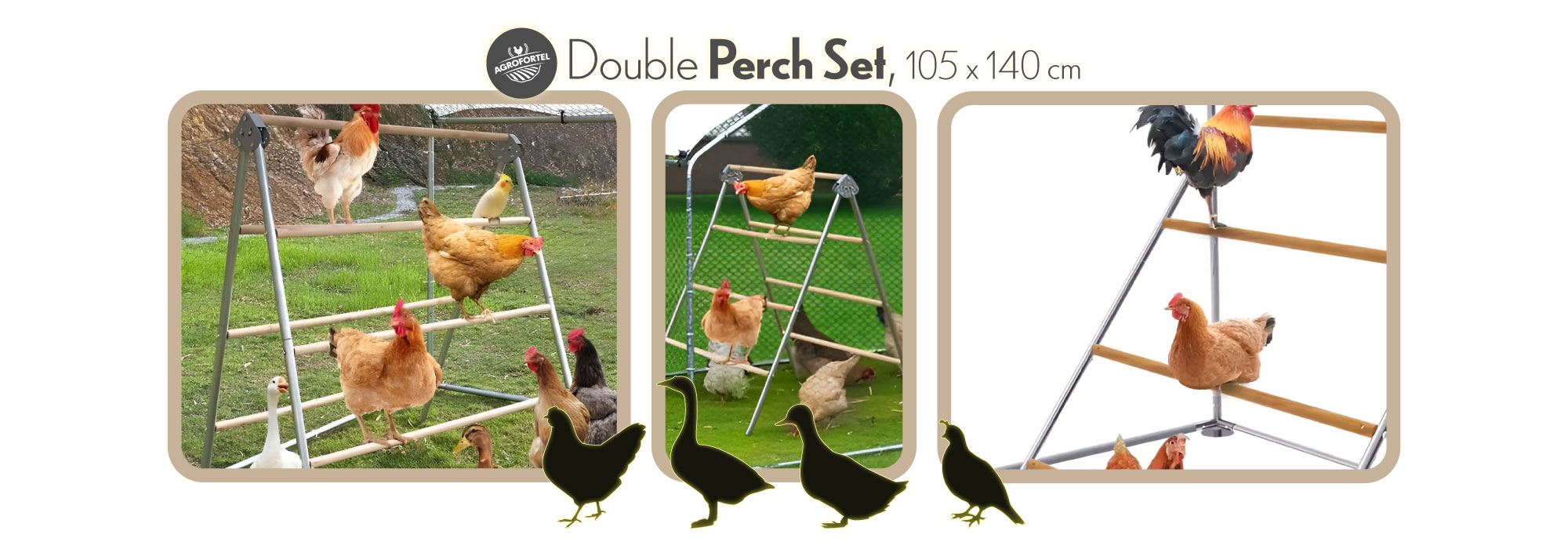 Dvojna gred združuje preprosto konstrukcijo, udobje in naravno vedenje kokoši. Je idealen dodatek k vsakemu izpustu.