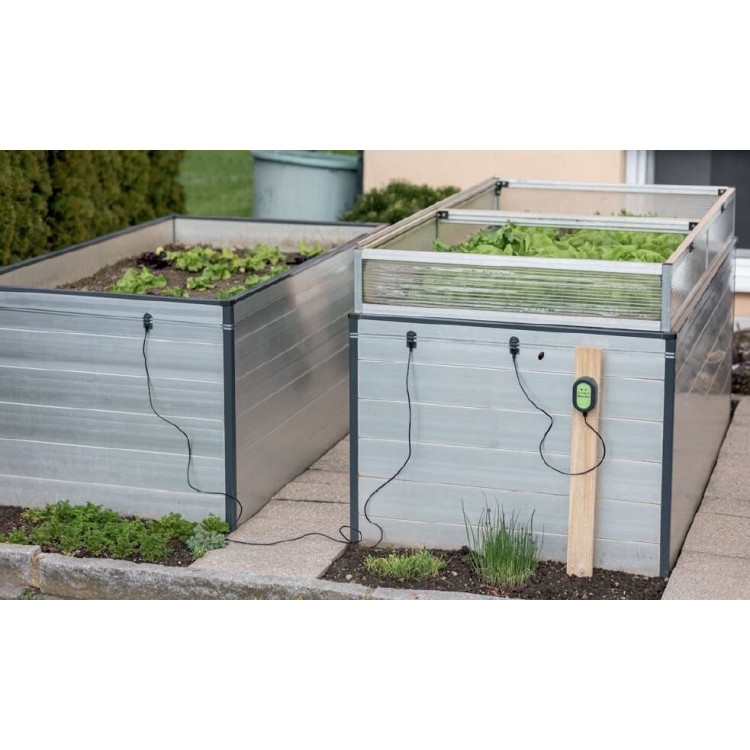 Osnovni komplet vsebuje 10 m traku, sistem pa je mogoče podaljšati do največ 30 m. Če želite zaščititi več mest, lahko s povezovalnimi konektorji na en vir impulzov priključite več gred, zato ni treba kupovati dodatne napajalne enote. En vir impulzov je mogoče uporabiti za do 3 samostojne kroge (ob uporabi povezovalnih konektorjev). To je priročno na primer pri več visokih gredah ali pri kombinaciji grede in robov pri tleh.