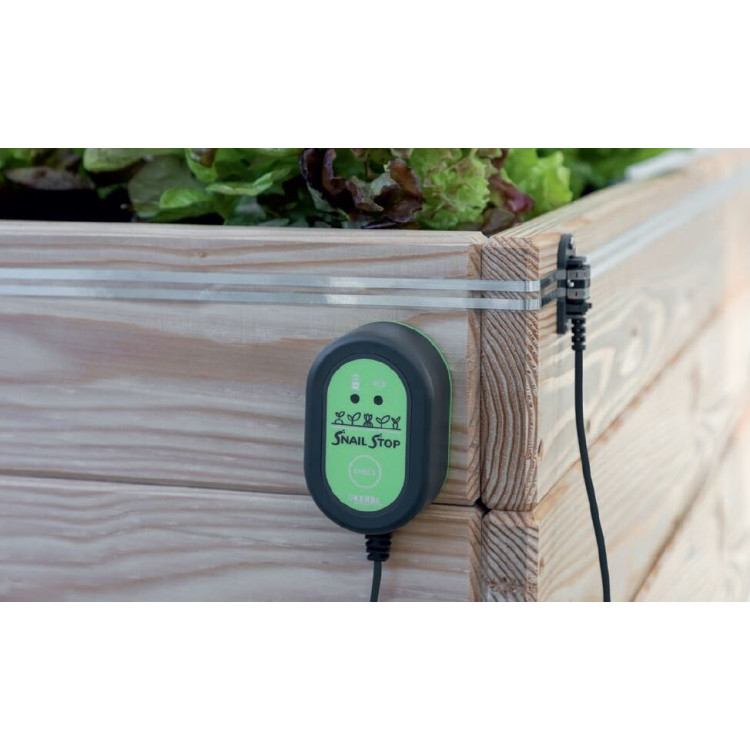 SnailStop je električna ograja proti polžem, ki pomaga zaščititi zelenjavo na vrtu brez strupov in kemikalij. Samolepilni prevodni trak okoli grede ustvari pregrado, polža pa pri poskusu prečkanja odvrne kratek impulz nizke napetosti. Ker deluje na 9 V baterijo, je sistem neškodljiv za ljudi in domače živali ter primeren tako za visoke grede kot tudi za običajne robove pri tleh.