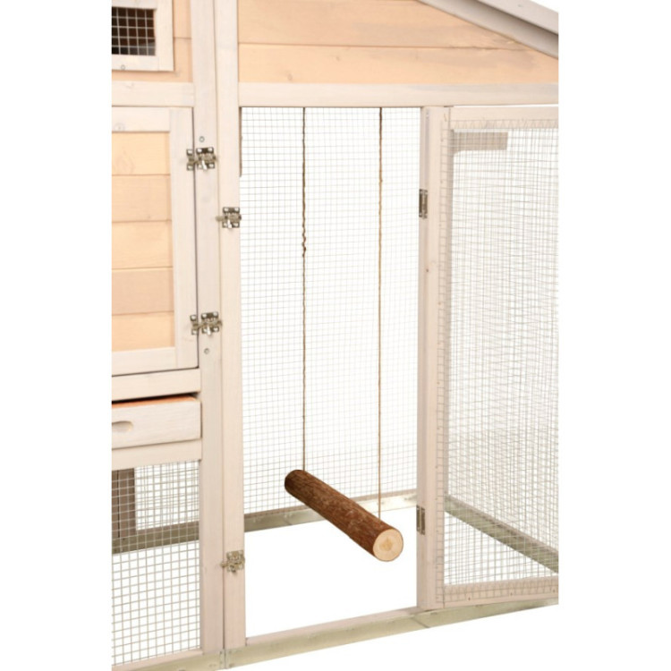 Nihajni gred za kokoši je preprost dodatek za kokošnjak ali izpust, ki perutnino zaposli in spodbuja njeno naravno vedenje. Lesena izvedba, obešanje na vrvicah in enostavna montaža kokošim ustvarijo prostor za aktivnost, počitek in prijetno dnevno stimulacijo.