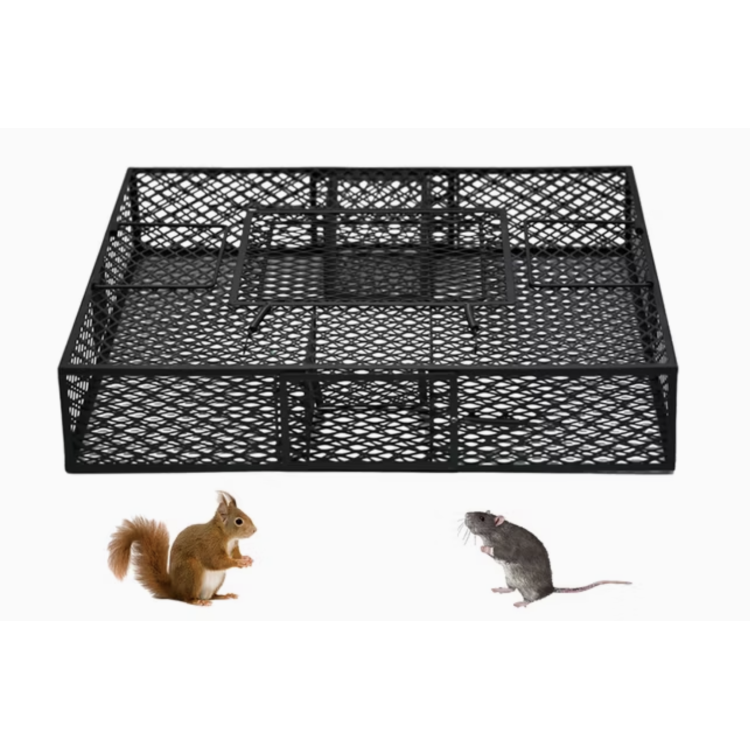 Velika površina in nizek profil omogočata postavitev v omejene prostore (npr. pod palete ali police), robustna konstrukcija iz pocinkane žice pa zagotavlja dolgo življenjsko dobo. Vrata z zgornjim odpiranjem omogočajo higiensko praznjenje, dva robustna ročaja pa omogočata varno prenašanje, tudi če so živali ujeti.