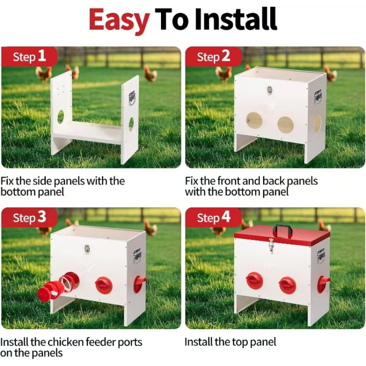 S 6 odprtinami za hranjenje imajo kokoši dovolj prostora za hkratno hranjenje. To pomaga zmanjšati agresivnost in zagotavlja enakomeren dostop do krme za šibkejše kokoši.