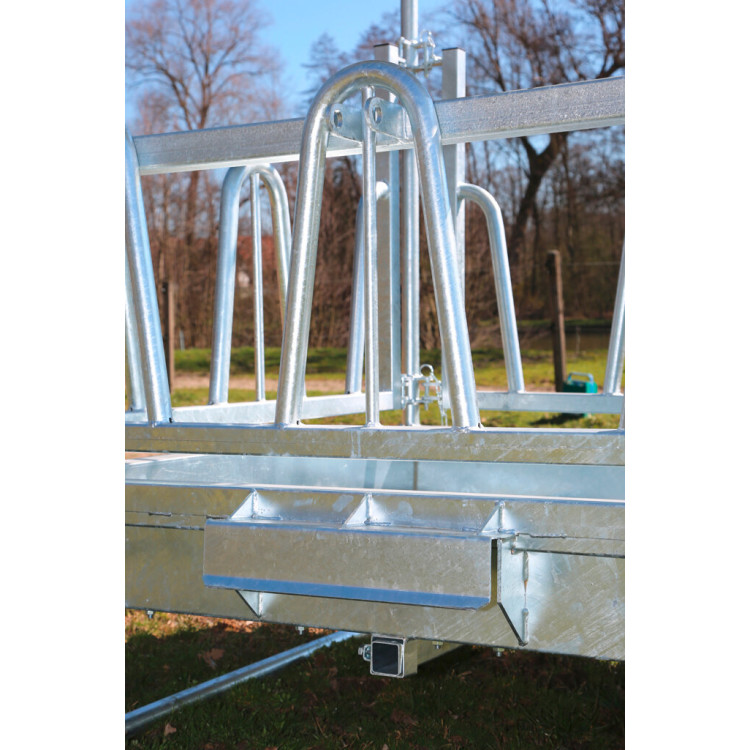 Kvadratni krmilnik za govedo in konje je praktična rešitev za krmljenje sena iz okroglih in pravokotnih bal do dolžine oziroma premera 1,4 m. Ponuja 8 krmnih mest, višino pa lahko prilagodite vrsti in velikosti živali, zato je krmljenje udobnejše in varnejše. Ker je mogoče dve strani enostavno odpreti, bale hitro zamenjate brez nepotrebnega prestavljanja. Konstrukcija je vroče cinkana in zasnovana tako, da so izgube krme minimalne.