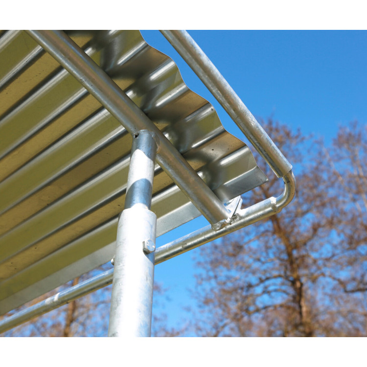 Za uporabo na prostem je pomembna obstojna površinska zaščita. Krmilnik je vroče cinkan in ima 1 kvadratno cevno oporo. Dobavljen je kot celovita konstrukcija, vključno z obodno zaščito roba strehe in s tremi varnostnimi sponami, zato je pripravljen za uporabo brez sestavljanja.