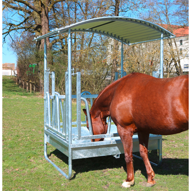 8 krmnih mest omogoča, da govedo in konji hkrati udobno dostopajo do krme.