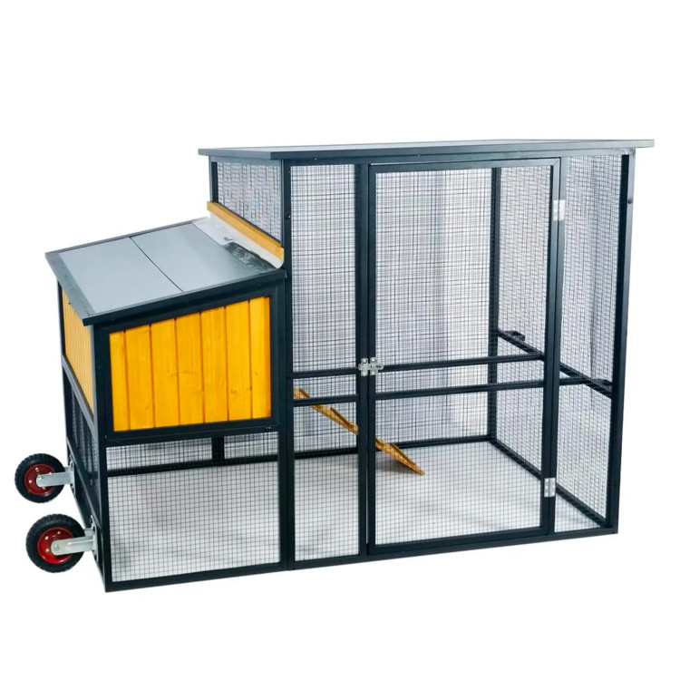 Velika kolesa in ročaj omogočajo enostavno premikanje kokošnjaka po vrtu, tudi če ga lahko prevaža ena sama oseba.