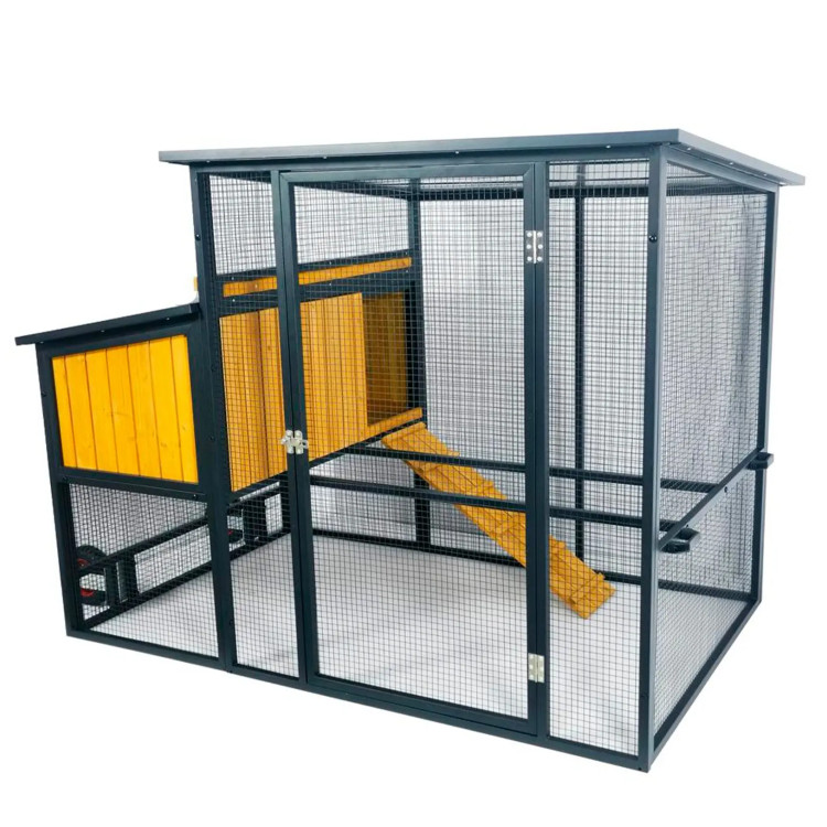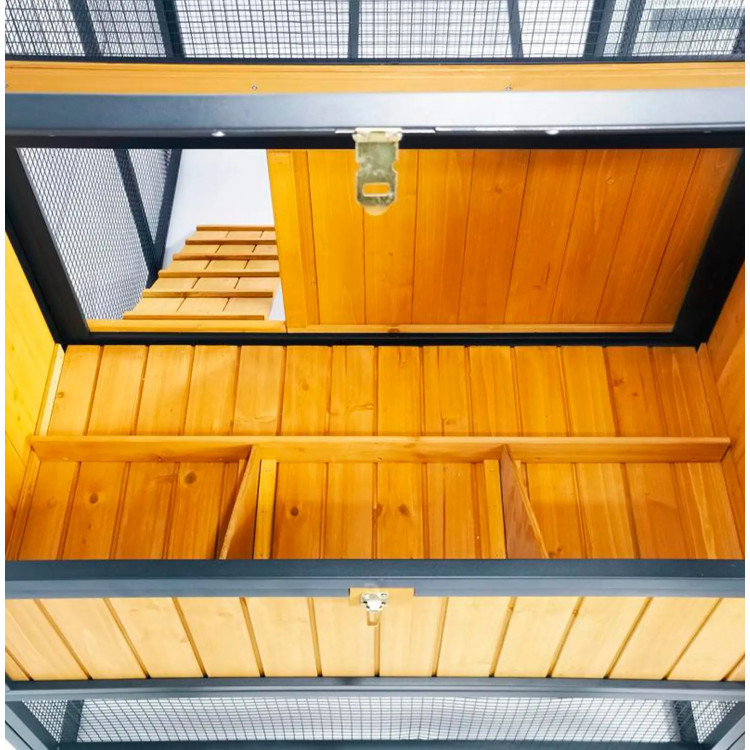 GAUN 10380 Ankara združuje zaprt prostor za gnezdenje, gnezdenje in valjenje jajc s sosednjim zunanjim mrežastim ograjem. To kokošim zagotavlja varnejše okolje in možnost gibanja brez potrebe po gradnji ločenih delov kmetije. Za redno domačo uporabo je to praktična rešitev, ki prihrani prostor, hkrati pa ohranja udobje za živali.