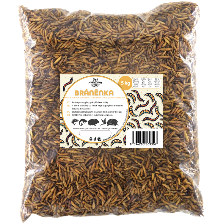 Ličinke so naravna hrana za veliko skupino živali. Posušene ličinke so 100% naravna dopolnilna krma za ptice, ribe, plazilce in male sesalce, kot so ježi, miši ali podgane. Je primerna in cenovno ugodnejša alternativa mokastemu črvu.