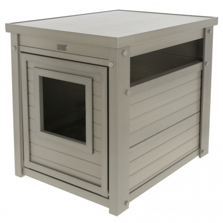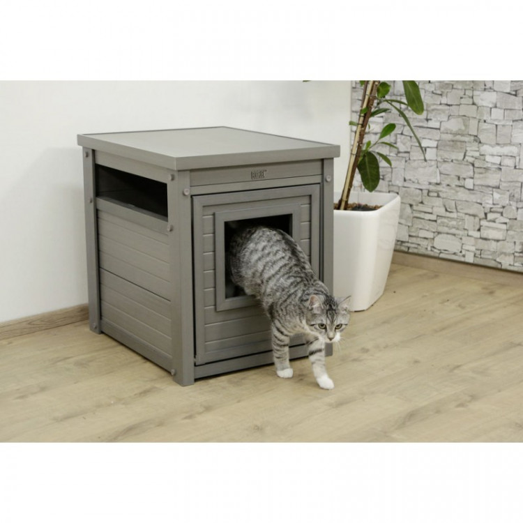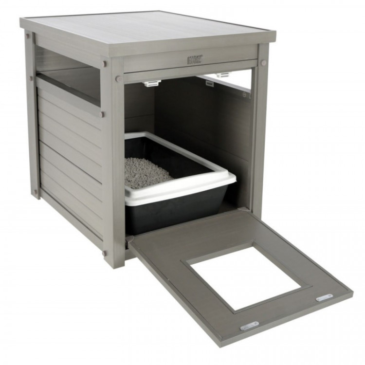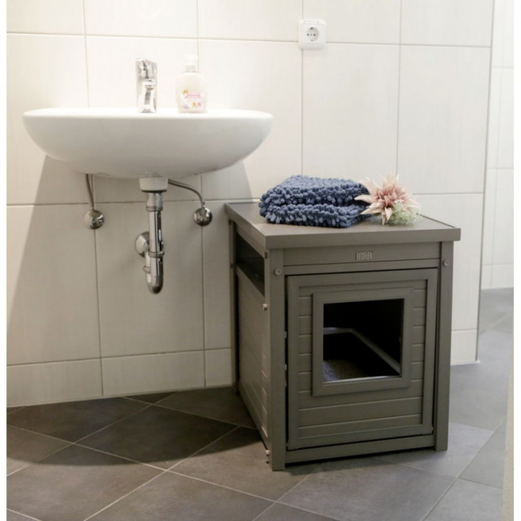 Videz klasične omarice se lepo zlije z opremo doma in pomaga, da mačji WC ni ves čas na očeh.