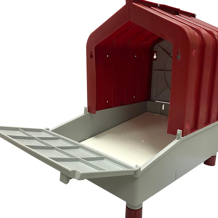 Praktično gnezdo za kokoši nesnice je zasnovano tako, da kokošem zagotavlja miren, čist in udoben prostor za leženje jajc . Zahvaljujoč dobro premišljeni zasnovi omogoča enostavno in higiensko zbiranje jajc , tudi prek integriranih inšpekcijskih loput.