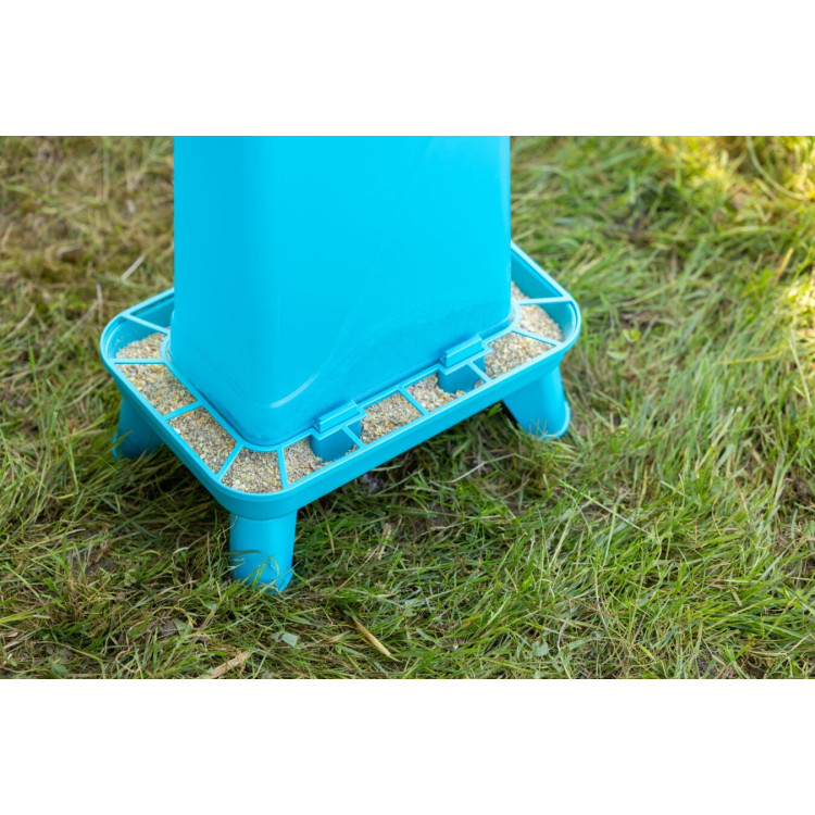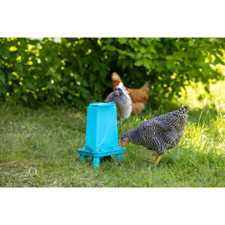 Priložene nogice poskrbijo, da krmilnik stoji stabilneje, hkrati pa dvignejo krmo višje od tal. Vsebina je tako bolje zaščitena pred običajno umazanijo s tal kokošnjaka ali izpusta, kar prispeva k čistejšemu in bolj praktičnemu krmljenju.