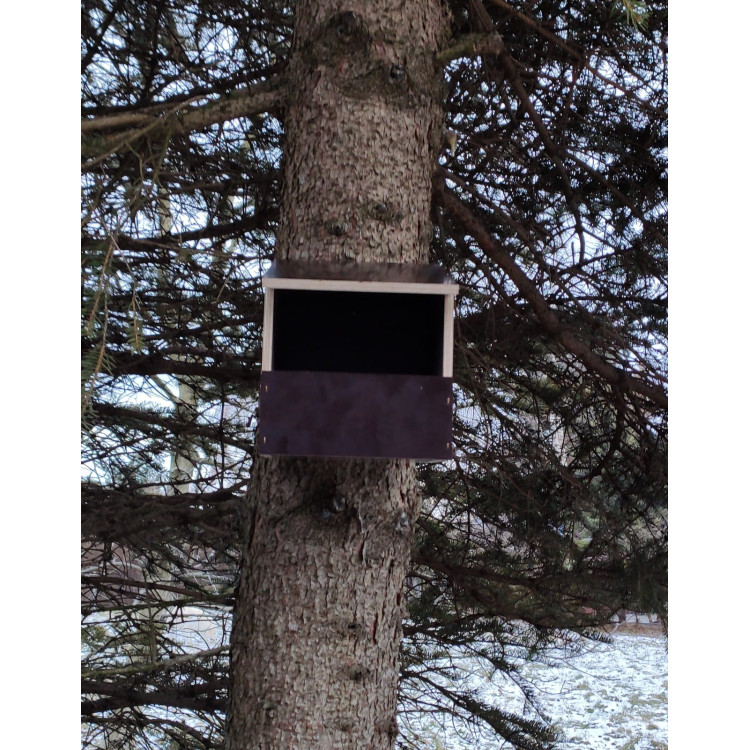 Ta model ptičje hišice je izdelan iz najkakovostnejše vodoodporne brezove vezane plošče, debeline 9 mm , in prevlečen s fenilno folijo. Namesti se lahko na fasade stavb, na mesta, ki so izpostavljena dežju.