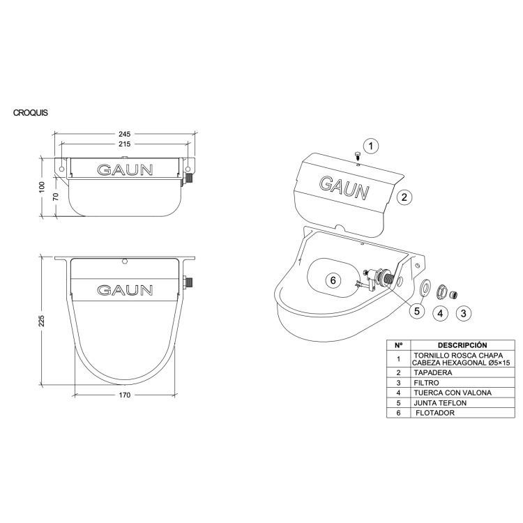 Aluminijasta napajalka GAUN P-5 je praktična rešitev za stalno oskrbo z vodo. S priključitvijo na rezervoar ali neposredno na vodovodne cevi vzdržuje konstantno raven in olajša vsakodnevno nego živali.