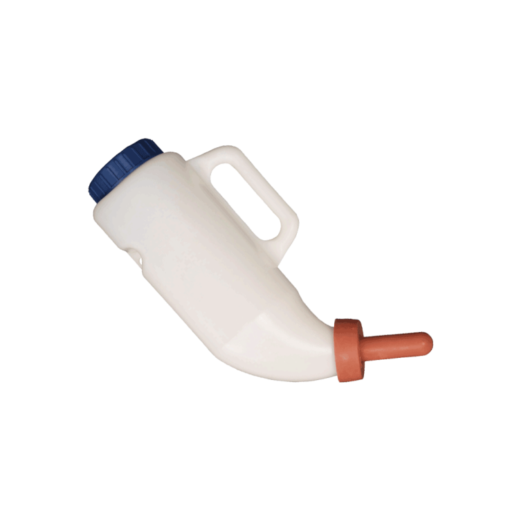 Visokokakovostna plastenka z debelimi stenami in gumijastim cucljem je idealna rešitev za individualno hranjenje telet in dajanje zdravil. Hvala robustna in vzdržljiva zasnova zagotavlja dolgo življenjsko dobo in zanesljivost pri vsakodnevni uporabi na kmetiji. Olajšajte si skrb za mlade živali!
