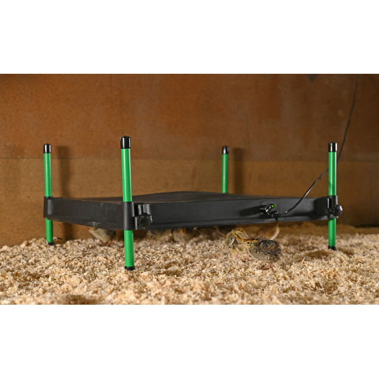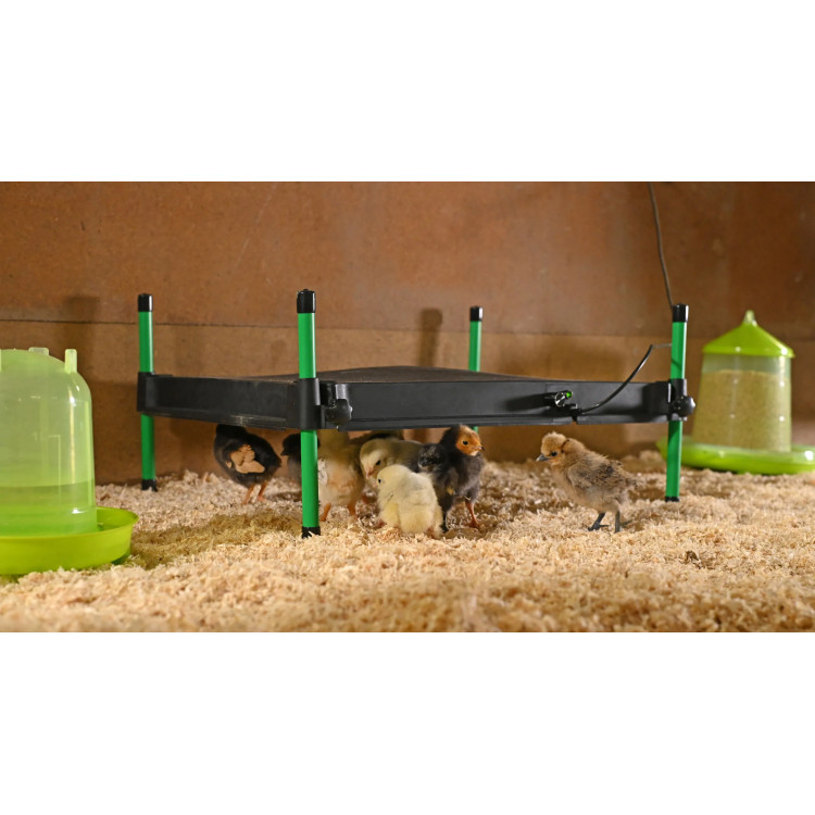 Stabilen vir toplote za prve tedne življenja piščancev: plošča ohranja temperaturo na mestu gnezda, lažje nadzorujete pogoje in zmanjšate tveganje za podhladitev.