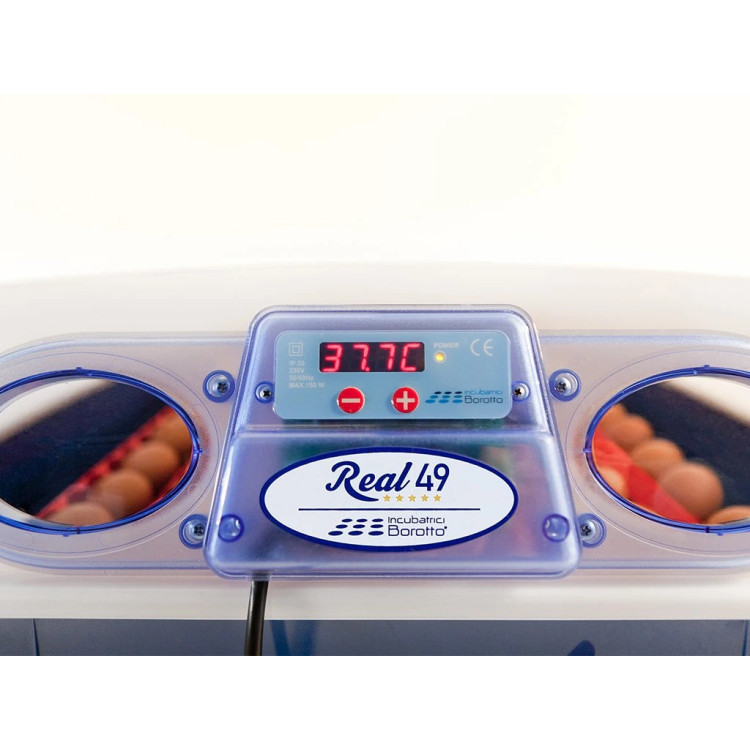 Inkubator Borotto REAL 49 je zasnovan za rejce, ki morajo hkrati izvaliti večje število jajc. Kapaciteta do 49 jajc omogoča učinkovitejše načrtovanje valjenja in prihrani čas in energijo v primerjavi z manjšimi modeli.